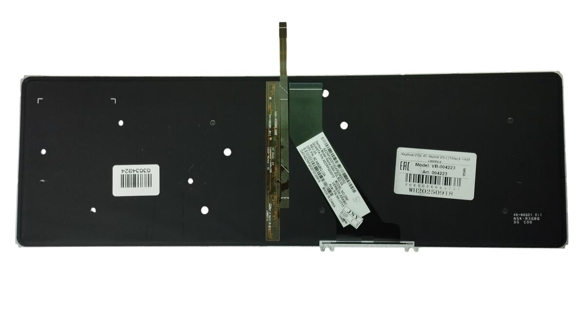 Клавиатура для ноутбука Acer Aspire V5, V5-531, V5-531G, V5-551, V5-551G, V5-571, V5-571G, V5-571P с подсветкой (Light), Black, (No Frame) RU